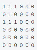 6 x 6 크기의 배열이 문제에서 주어지게 되는데, 문제에서는 아래와 같은 모래시계 모양의 subnet array 최대값을 구하도록 요구된다. (1이 있는 자리를 보면 알 수 있다)